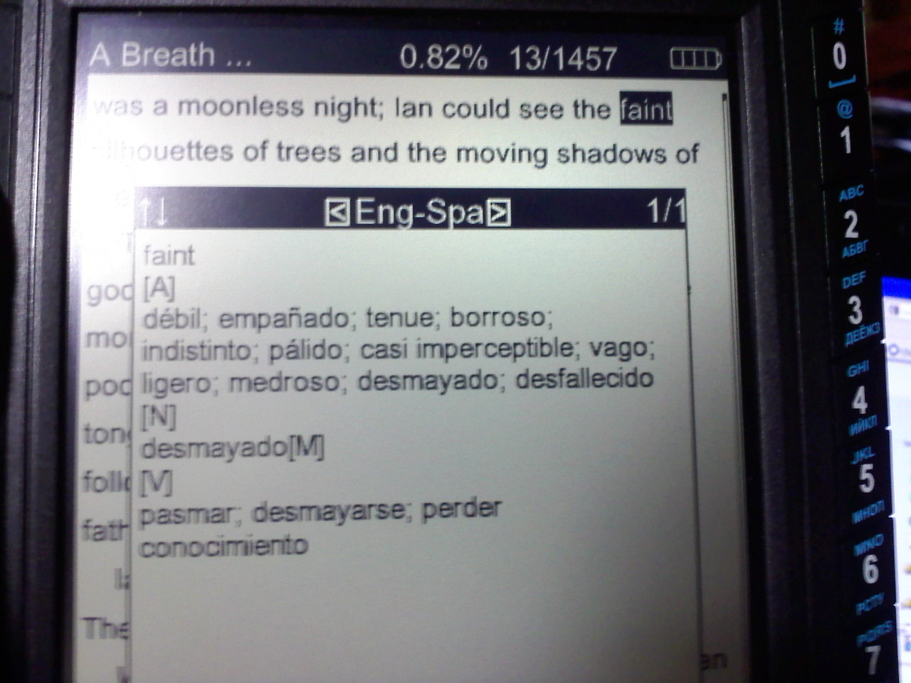 @bjones: WOW !! It's nearly exactly what I was looking for but I need the french dictionary and tactile could help ... I'll look if it's possible to install other dictionnay@EA: great too. I like the kindle, I'll check too for those dictionaries. If somebody else has a ebook reader with great translation habilities and want to share about it. :-D |