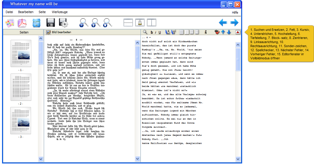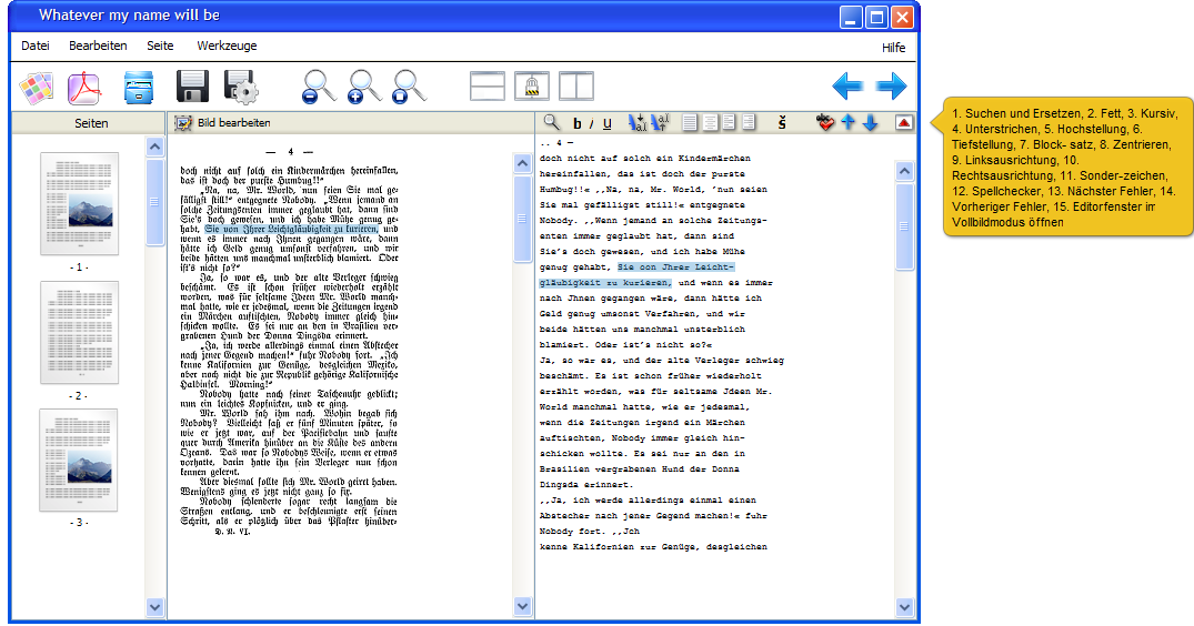 ![]() Edit: Da ist schon eine Idee. Wäre es möglich, wenn man einen Teil des Textes im rechten Abschnitt mit dem erkannten Text markiert, diese markierung auch in der Vorlage anzuzeigen. So wie im Anhang? Last edited by Josch91; 12-18-2009 at 04:10 PM. |