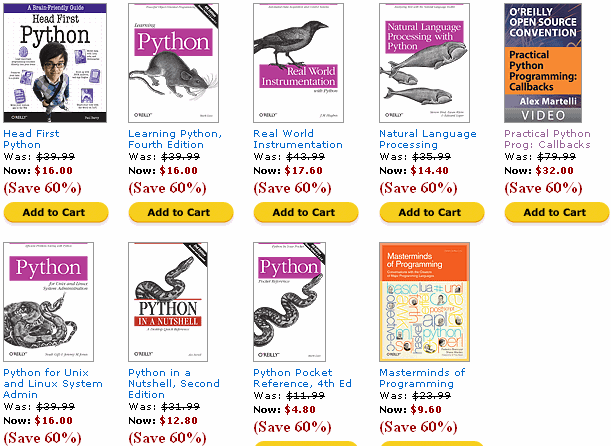 60% off from O'Reilly's top 10 Python titles - valid 2010-12-16