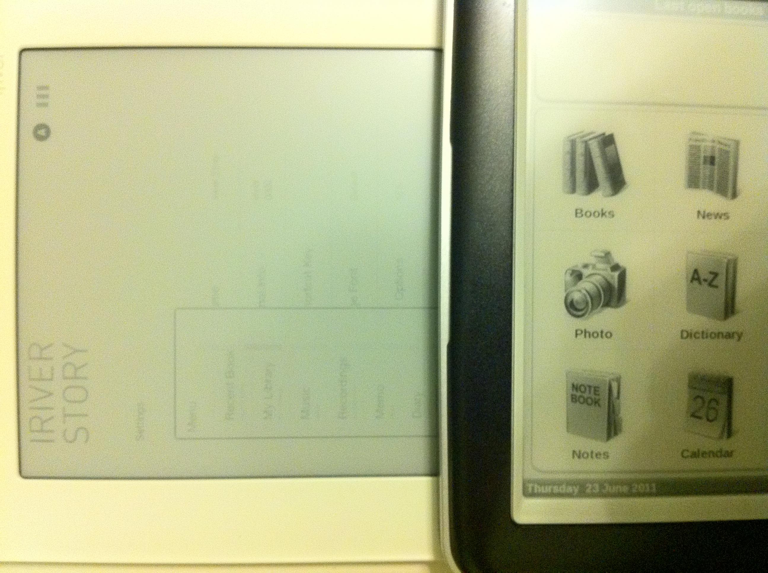 My iRiver story, which used to have better contrast than my PB360, has now faded significantly (it is 19 months old). See how faded it is now compared to by PB360