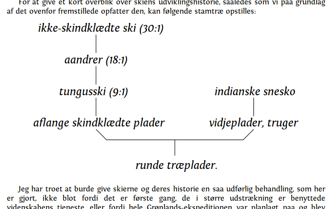 A couple of samples from "Paa ski oer Grønland" by Fridtjof Nansen. First, an evolutionary tree of the ski: