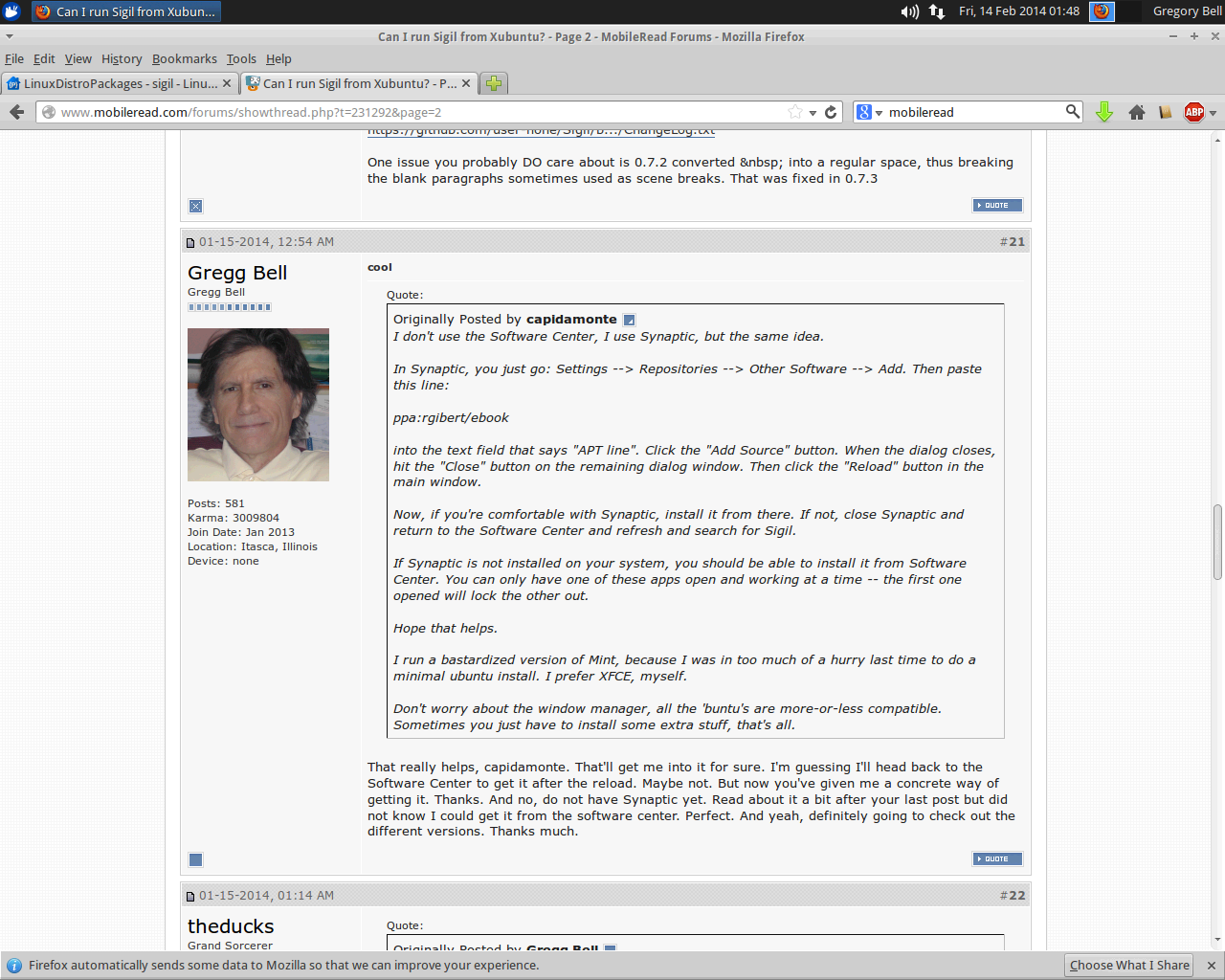 You're absolutely right, Harry. What I was trying to do was see if I could get by with just a Linux computer (after MS stops supporting XP April 8). So I wanted to know if I could get the basics I need for making an ebook (Sigil, Kindle Previewer etc.). I thought that would be quick and easy, but it hasn't been. And eschwartz gave me a great book on Linux. I started it but definitely need to delve further into it. Appreciate it.