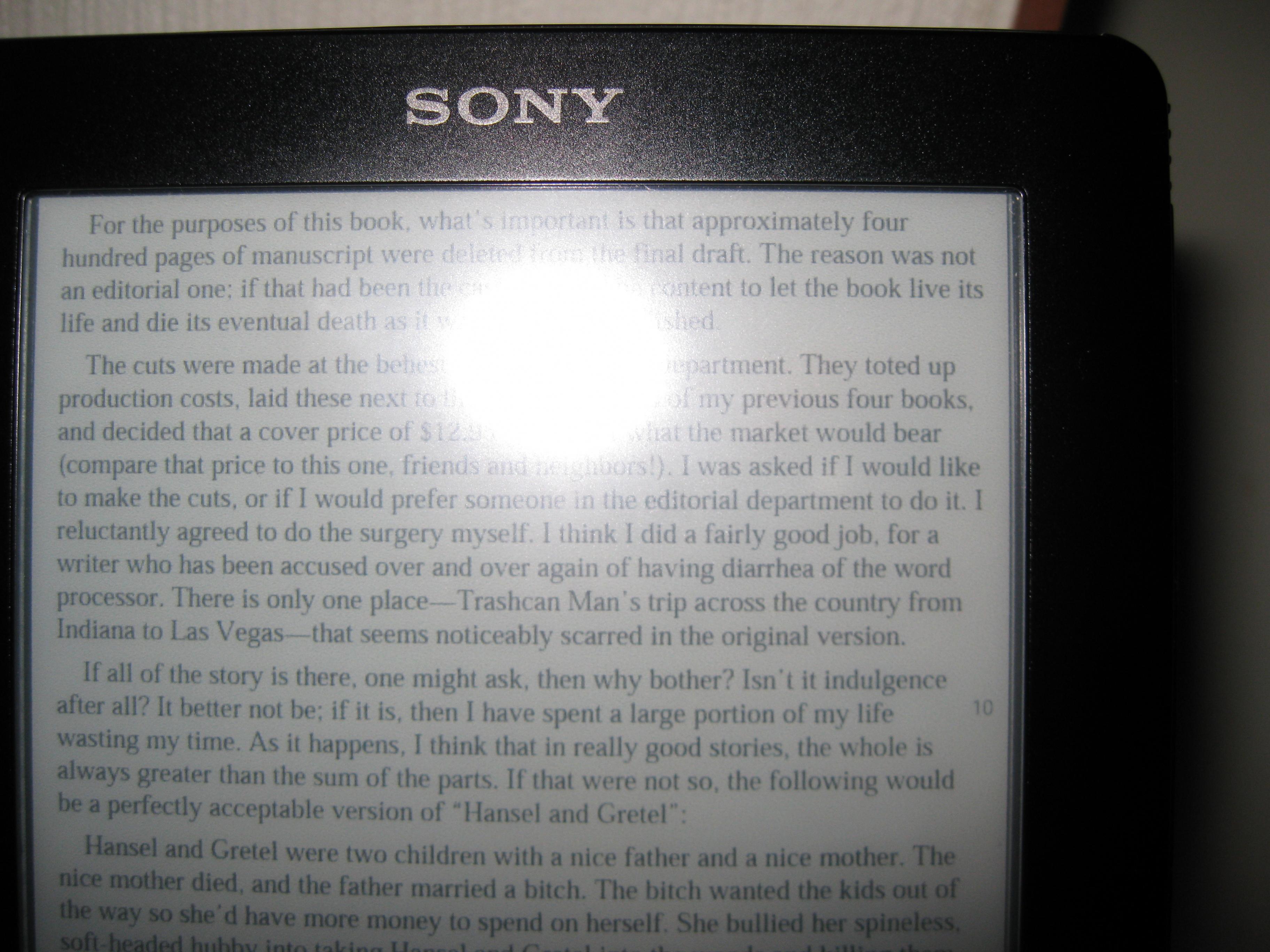 The picture of The Stand is very representative of ePubs I've seen recently. My choice of font size varies depending on the lighting and whether my eyes are tired.