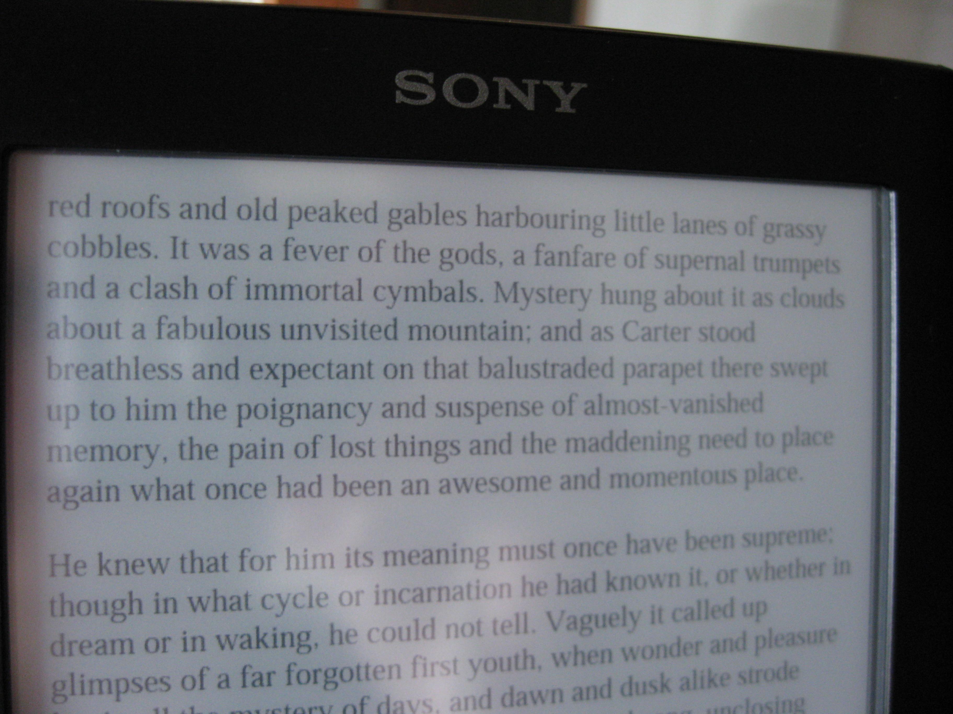 Here are three pictures. The first two are of The Stand with the smallest small font, and the third one is an H.P. Lovecraft book which I downloaded from manybooks.net. I feel this version of small is perfect.
