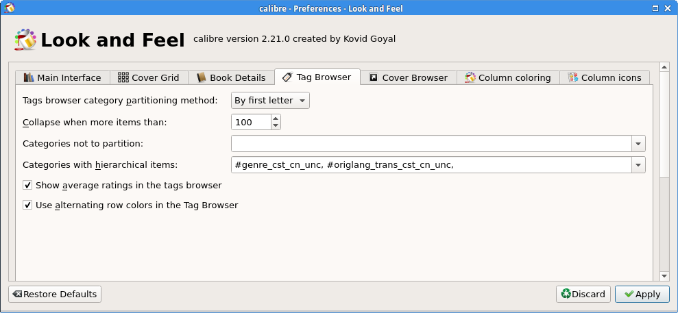 A little query about the pop-up infos in the Preferences -> Interface -> Look and Feel -> Tag Browser window. Depending on the position of the pointer information is presented in different ways. Info in pop-up box. Info in pop-up box and above. So far that's all right even for me that's a gimmick. But in case of a long info text it doesn't work properly. Info in pop-up box and above only partly (15 inch screen, full screen height wouldn't change anything). IMHO the pop-up infos would be totally sufficient. The view time of these pop-up infos I have found they are relative to the length of the info text. E.g. the pop-up info to Categories with hierarchical items (longest one) lasts 20 sec, that to Show average ratings in the tag browser (shortest one) is 10 sec. (The others are between in time.) Show average ratings in the tag browser Sophisticated! But a non-English speaking person sometimes needs longer to comprehend the info. Moving the mouse pointer drops them anyway. Where is to set the duration? Last edited by chaot; 04-10-2015 at 08:47 AM. Reason: Ile (Improvement of linguistic expression): But a non-English speaking person sometimes needs ... / rearrangement of images & corresponding text / trifles |