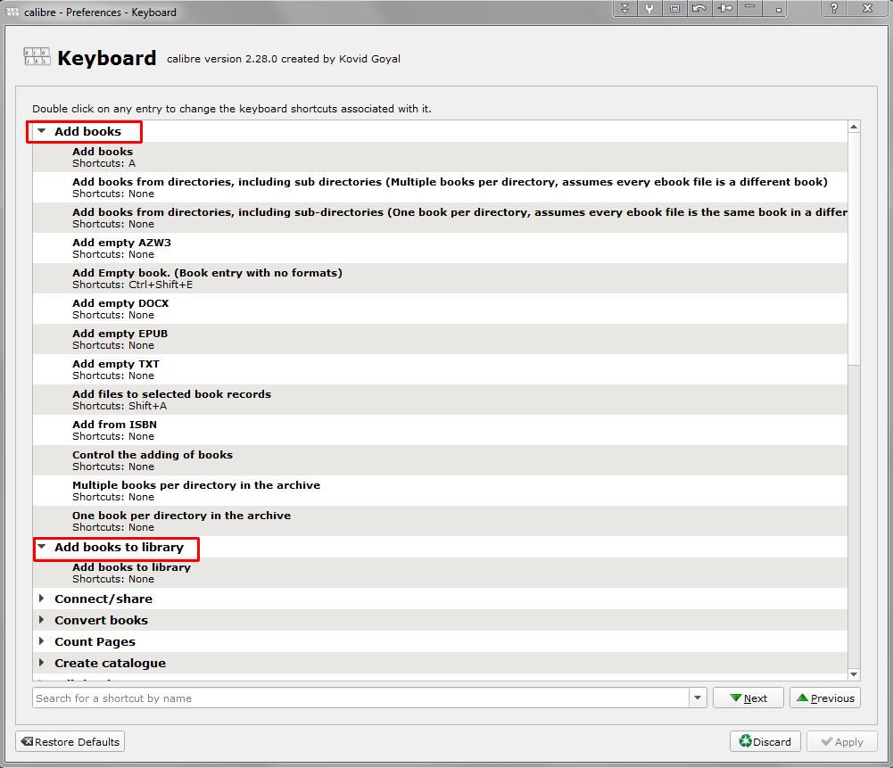 What is the purpose of the Add books to library keyboard short cut group/item ? BR |