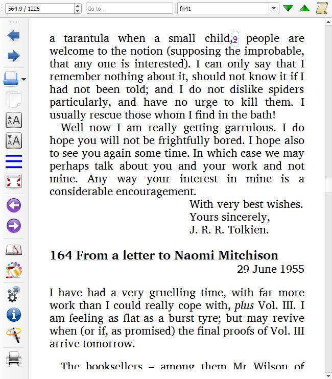 I'm using the calibre Book Viewer to read a fairly long book for the first time. It's a "scholarly" book, with lots of footnotes. Some of the footnotes have footnotes.
