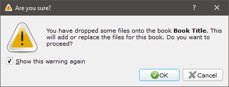 FWIW - I just discovered that in Windows at least you can drag/drop the deleted format files out of the Recycle Bin folder directly into the relevant Book Details panel, and when you do you'll get two message popups : So no messages when the original error was made, but two when you're trying to recover I see Windows delves into the file to extract the metadata - that's nice. That would be useful on the calibre "You have dragged some files..." message. When dragging a file out of a details mode folder, its easy to select the wrong file. FWIW I'd like to be able to copy (or cut) and paste from file manager into book details. Far less chance of copying the wrong file with ctrl+c(x) and ctrl+v than there is with drag and drop. And you don't have to position the windows 'just so'. BR Quote: