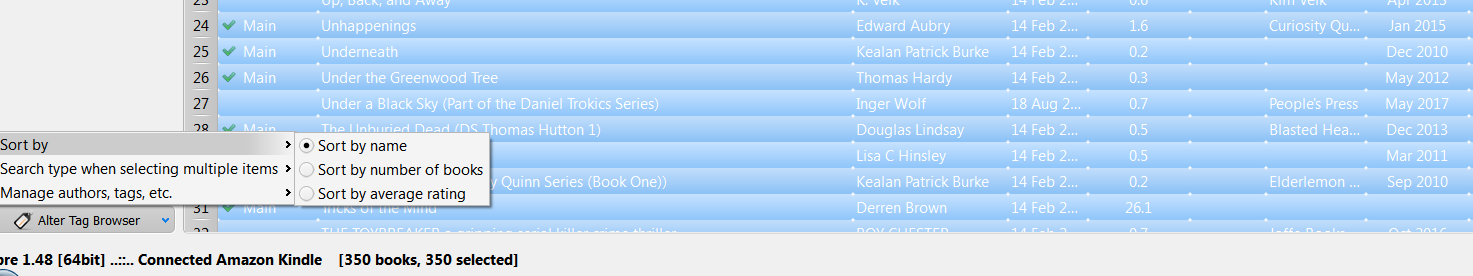 I have tried to follow the instructions to 'select all books' (by holding down control & dragging the mouse down the page) as there does not seem to be a 'select all' box. But where is this 'Update Title sort' box that I'm supposed to tick? Thanks ![]() And before someone helpfully points out that this an old thread. Yes it is isn't it! |