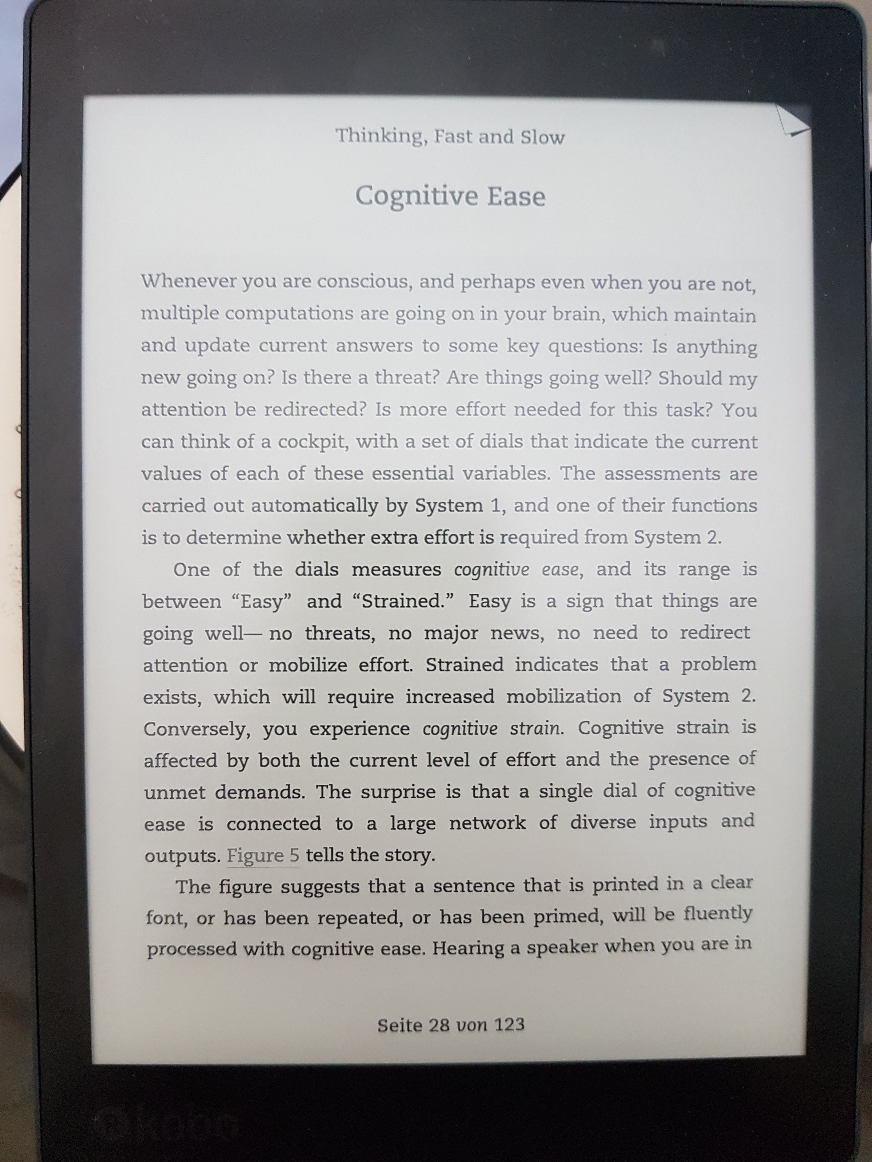 ![]() I recently got a Aura One and really enjoyed reading with it. When I was starting a new book, however, the header with the book title was missing, so the text stretched to the very top, there was a larger gap at the bottom of the screen, and page numbers were overlaying with the text (I figured I can switch those off in the settings). See the pictures attached. I found that this was the case with a number of my ebooks. I am not deep into ebook-formatting/coding and have basically no idea what to make of this. It's okay so set fonts and sizes new, but some ebooks being rendered this weird, is a bit of a turn-off. On the Kindle, they all look uniform. What's the reason here? Similarly for footnotes. Some open as pop-ups, other just jump to the corresponding page in the Notes-section. On my old Paperwhite the same ones open as a popup. Others, which don't pop-up on the Kindle, do so on the KA1. Is there a system behind it? Unfortunately the really footnote-heavy book only opens pop-ups on my old Paperwhite...I would really appreciate some insight into this! The KA1 is less than a week old, so I am thinking of just returning the KA1 to get another Kindle. Would miss the Pocket integration though.