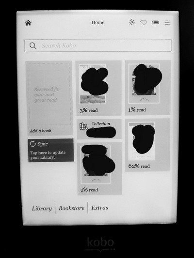 | 3.19.5761, home screen, kobo glo, patching, sync button |