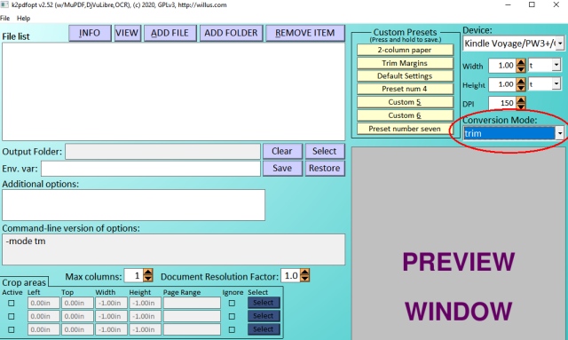 The final file has a too big a size (100 MB...). See screenshot of the option I used. Could you attach a screenshot of the GUI with the right options to enable? PS: I'd like to get a text area only with a margin of only 2 mm around if possible. |