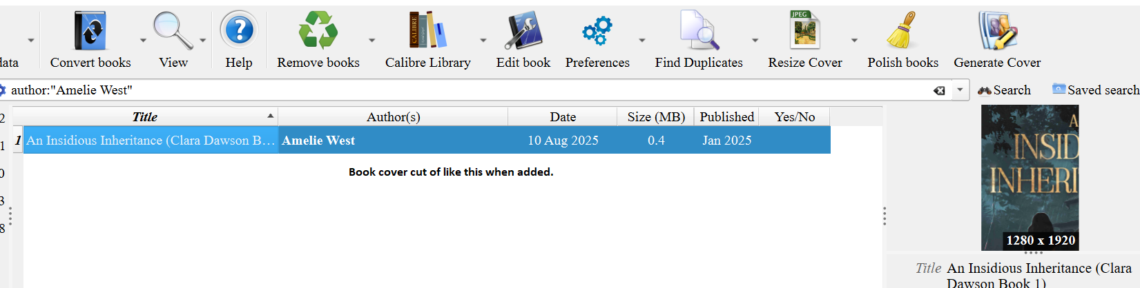 I've added a book to calibre but the book cover is cropped, and when I go to edit book, some of the images are cropped as well. I didn't change anything on calibre, and I've updated to version 8.8 and still didn't fix the problem. It just stated today. I've included some images. [Attached instead.] Thanks. Last edited by pdurrant; 08-11-2025 at 05:29 AM. Reason: attached messages |