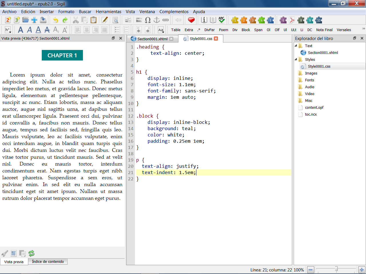 It worked brilliantly. I did change the colour and font size a bit but now my epub is really looking perfect. Many, many thanks.