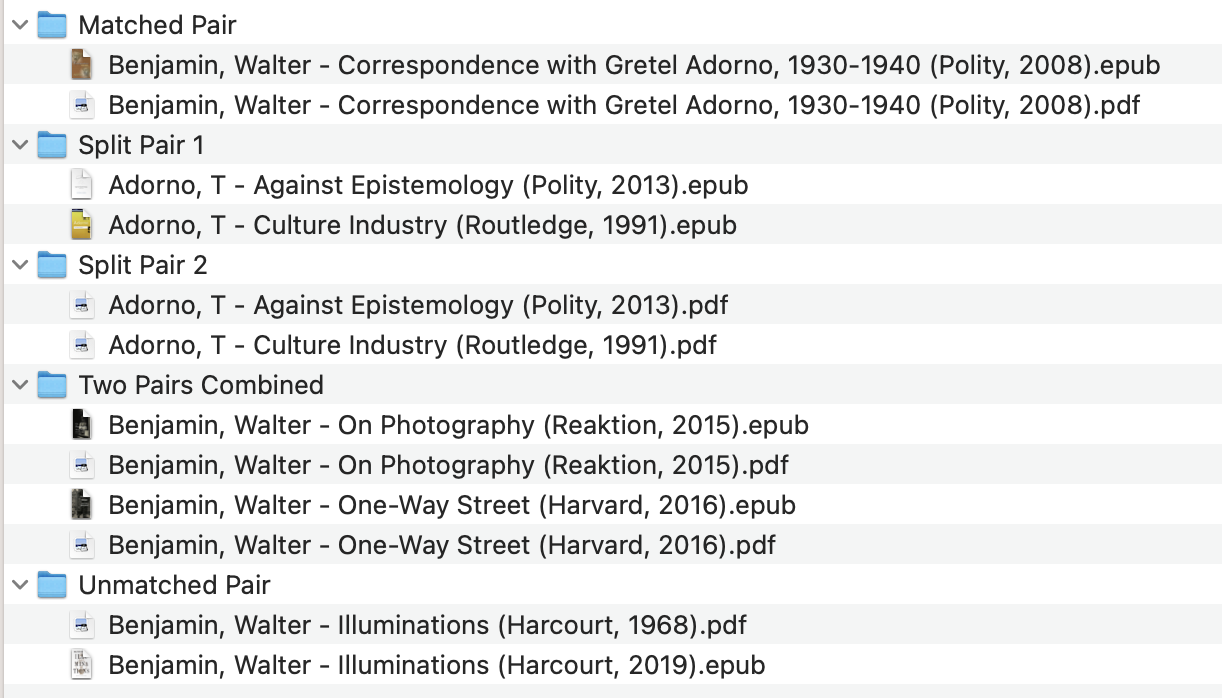 I want to have a strict "one book = one format" policy in my library. I deal with a lot of versions and editions of the same book and run into Calibre merging things I didn't want merged somewhat frequently. 1) Identical filenames in the same directory. I constructed this situation to infer exactly what was happening. Identical filenames with different extensions found in the same directory during an "Add from folders" automatically merge. No matter which option I select re: same folder = same book. Can this be prevented? I imagine this functions well for most people but it's pushing me into weird fiddly corners and creating friction where I really want to just set and forget. 2) Duplicates found on import. Attachment 201047 Can I stop this from showing up? It's never relevant to me. I'm a bit confused on what actually happens and if this can lead to a marge. It'll also oft Am I safe to think if I just press 'OK' that it'll never attempt to merge anything? 3) Same folder = same book prompt. Is there any way to make either option for this prompt automatic? I'll never click 'Yes' intentionally. ----------------------------------------------- Using auto add seems like it would cut the majority of this out but my file system has metadata at the folder level that I was intending on using 'Get Filenames' to capture then S&R into appropriate fields. Many, many hours of work wasted. I can think of ways to solve this before I start adding anything but I'm not very confident in my scripting skills and the extra cognitive load and margin for error I'm adding in on a huge task feel bad. |