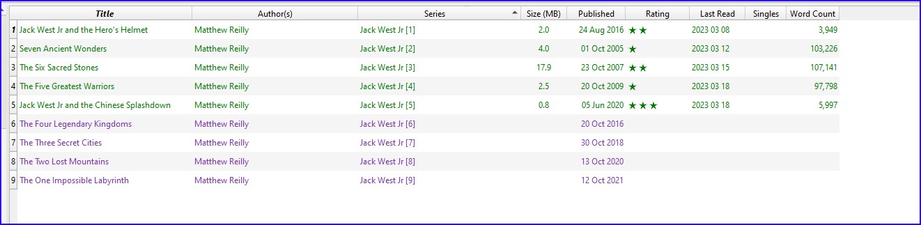 When I am about to embark on reading a series, I research the books in the series before I start. Once I have a complete list of the books in the series and related series, I add them into Calibre, whether I have the ebooks or not. Some may be entered as stub entries only (purple items in the image). To me it is important that the books are ordered by story timeline, so they will be added and numbered that way. I can then start reading in confidence that I have listed all the books and they are in correct order and not kick myself after realising there is a prequel book that I never knew about. I also combine multiple series into one when the author, for some reason, breaks them into multiple series eg The Saga of Seven Suns which is followed by The Saga of Shadows or The Rho Agenda: Inception, The Rho Agenda and The Rho Agenda: Assimilation. And for those books in the series I don't have, I'll wait before purchasing to see how much I enjoy the books I do have. No need to waste money on books in a series that I am not enjoying. (as evidenced in the image) |