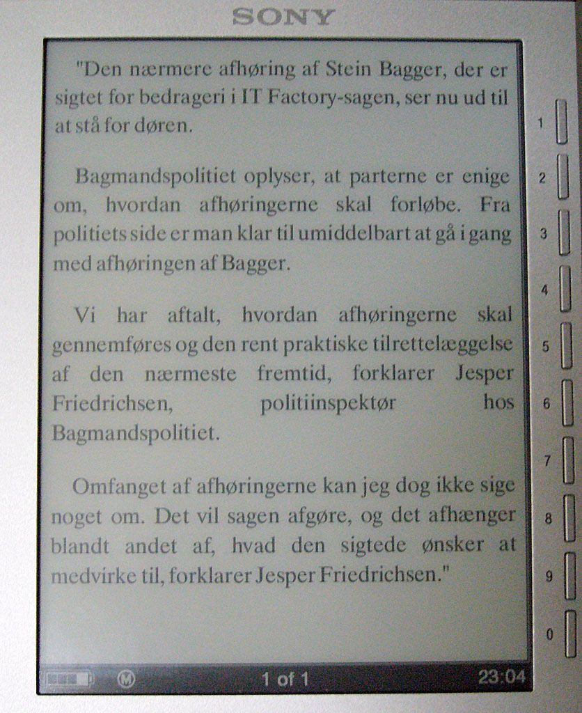 ![]() I've checked the prices in both the UK and the States and they're so close that it doesn't matter where you buy it right now (when you convert to Danish currency). I have an example of a Danish text here: "Den nærmere afhøring af Stein Bagger, der er sigtet for bedrageri i IT Factory-sagen, ser nu ud til at stå for døren. Bagmandspolitiet oplyser, at parterne er enige om, hvordan afhøringerne skal forløbe. Fra politiets side er man klar til umiddelbart at gå i gang med afhøringen af Bagger. Vi har aftalt, hvordan afhøringerne skal gennemføres og den rent praktiske tilrettelæggelse af den nærmeste fremtid, forklarer Jesper Friedrichsen, politiinspektør hos Bagmandspolitiet. Omfanget af afhøringerne kan jeg dog ikke sige noget om. Det vil sagen afgøre, og det afhænger blandt andet af, hvad den sigtede ønsker at medvirke til, forklarer Jesper Friedrichsen."