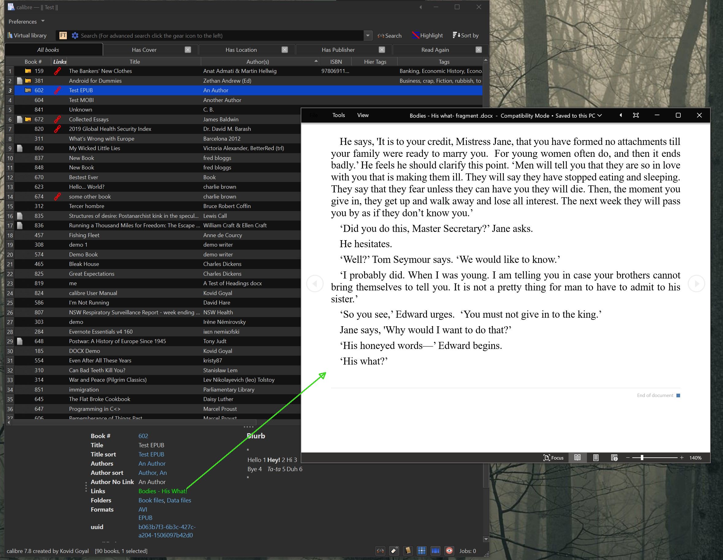 Then you can click on the column in Book details: If the file cannot be found it's dead link, nothing will happen of you click on it. If this is for adding an extra file(s) to a book - e.g. a French language EPUB of Proust's Remembrance…, when you already have an EPUB in English you should consider using calibre's 'data' folder feature Quote: