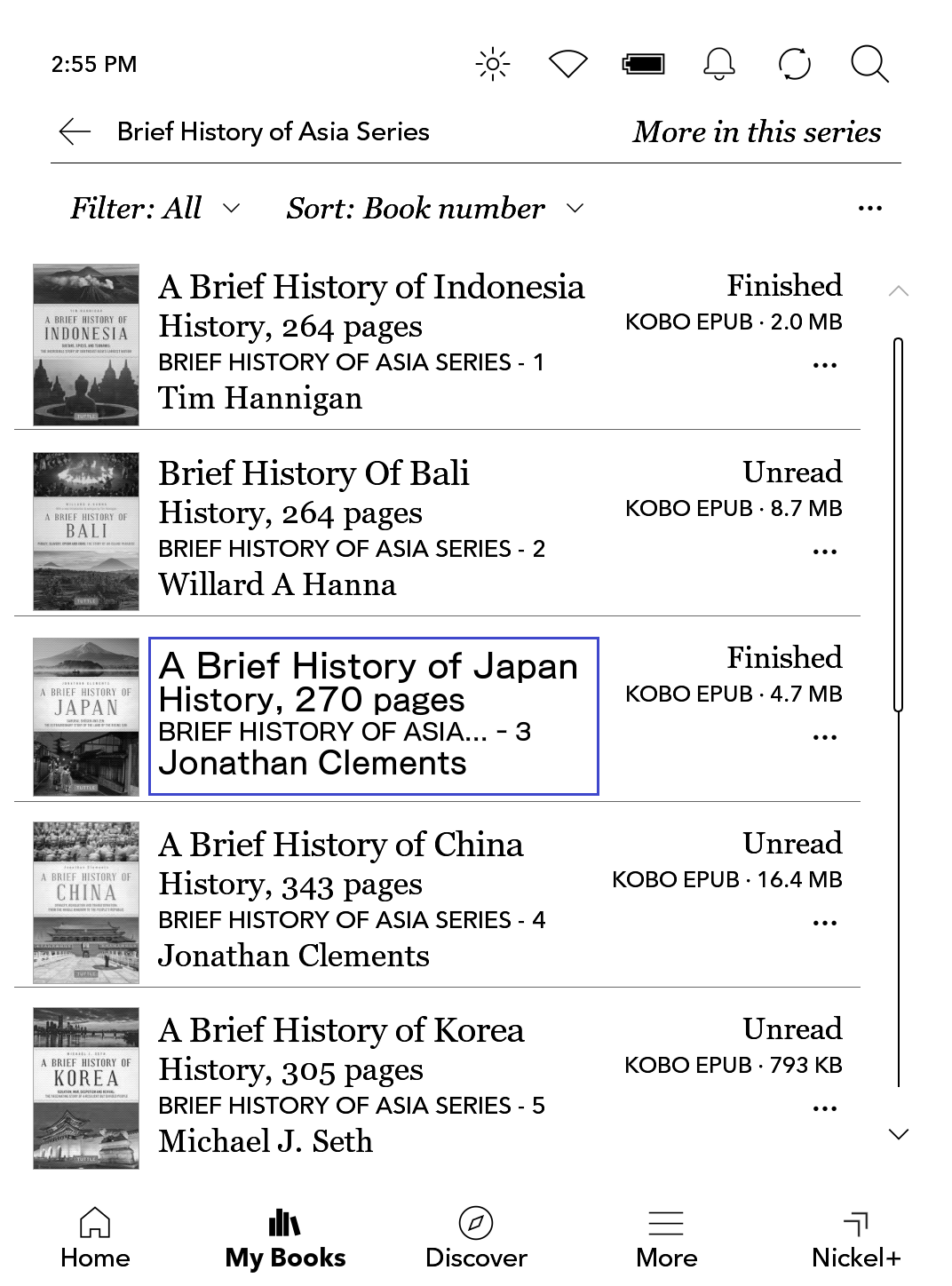 I have a different font and size shown in my Kobo booklist in the following image. How do I fix that? Thank you |