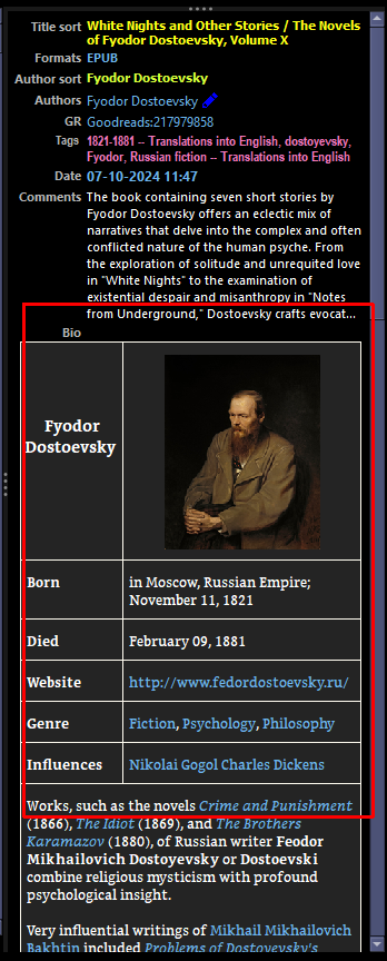 I just edited a bit the html inside its authornotes.py and changed the plugin name to GR Author notes "2". Modified plugin is attached. I took a look at Summernotes and couldn't figure how to install it. In the past I'd use Macromedia Dreamweaver for stuff like this (I call it mixed code). This time I used a text editor and some (a lot of, actually...) Calibre restarts. ![]() And I had to tweak the BD styling with some negative margin: Code: