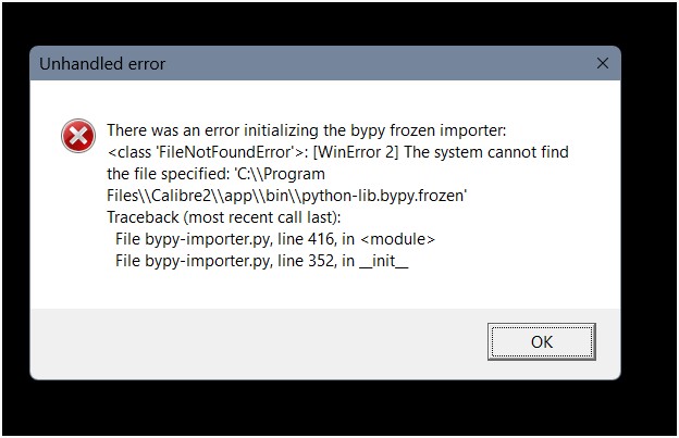 After reinstalling Calibre it opened and then my computer updated and now I am receiving this error. Any suggestions please? |