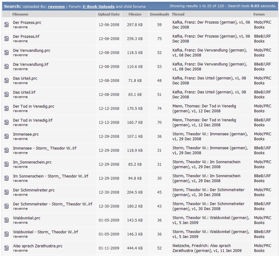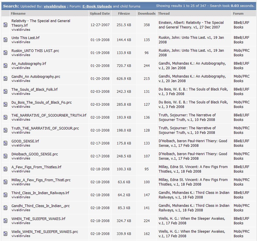 ![]() Well, ever wonder what these Top Uploaders uploaded in the early years of their ebook creation "careers"? Well wonder no longer as I present to you, the Top Uploaders' Early Ebook Uploads (Rank 01 to 18) in glorious picture form (and list form): Code: