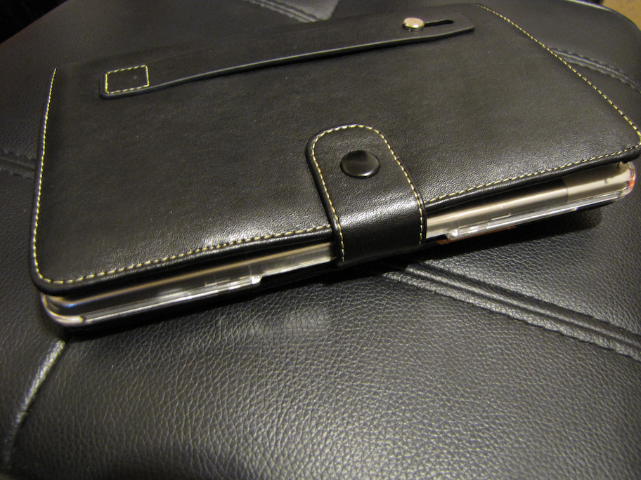 I had bought it as the same time I bought this: http://www.amazon.com/gp/product/B0025LP6OM and they arrived the same day, but I was really unhappy with the TrendyDigital case. The leather sleeve that held the kindle was misaligned, so the cutouts didn't match the Kindle as well as I would expect. So I went Frakenstein on it and cut out the leather sleeve, and what do you know, the outer leather 'shell' of the Trendy makes a perfect snap-wrap for the plastic case! It isn't a 'reading' case, you won't hold this like a book since it has no clips or straps inside anymore. This mod is more of a travel wrap for protection in a purse or bag (I had bought this Kindle for my mom to carry to work with her, so I know it is going to be safe now). Sorry for hijacking your thread Lis, just wanted to toss this idea out there and let you know what I thought about that plastic case you got, hope you don't mind! =) |