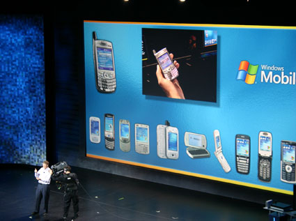 "Another thing we're committed to is Windows Mobile .. 93 operators in 55 countries ... This one you've probably heard about - it's our partnership with Palm. This phone is amazing for single-hand operation. Based on the experience they had, they brought that to the Windows Mobile platform. This is on sale, starting tomorrow, ahead of schedule. They got approval from Verizion (EV-DO). Any sort of attachments, images, will be fantastic because of the bandwidth." Via CES Engadget |