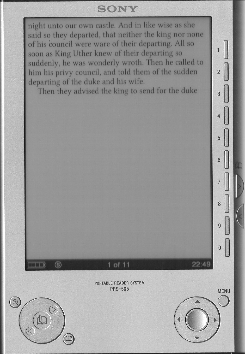 I've been having trouble viewing epubs on my Sony PRS 505. Whether I convert them with Sigil or Calibre, I get one of two problems: 1) when viewing at Small size, everything's fine, but when I increase the font to Medium, the text is missing several lines of text (only the top 1/3 of the screen has text, the rest of the screen is blank). 2) I get the same problem at all sizes. Some text at the top, but the rest of the screen is blank and missing several lines. This only happens for epubs where I'm changing the fonts (either with @font-face rules or with a hack).The epubs display correctly on both Sigil and the Ebook Library, which is why I'm thinking the problem might be with my reader. I'm using Pepak's Replace Default Epub Fonts hack at the moment, as well as PRSCustomizer, but I've been having that problem even before I installed them. Any help/input would be greatly appreciated! Here's my userStyle.css: Code: