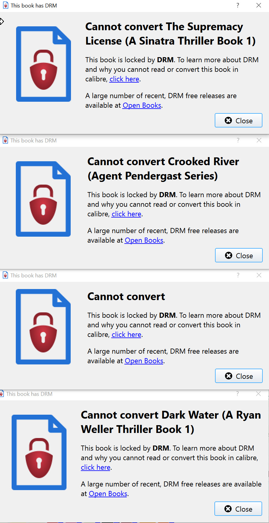 1. Running Windows 10 Pro - reading with BOOKS on ipad - converting with EPUBOR 2. PROBLEM: all books (KINDLE) are converted to ePUB with no issues. 3. When connecting iPad to import to BOOKS - most all import with no problem 4. However, there are several books for which the option to import to BOOKS is not available... 5. BOOKS is not in the list to import to and I don't see a way to add it... What am I missing here... Your input is appreciated... Thanks Ed |