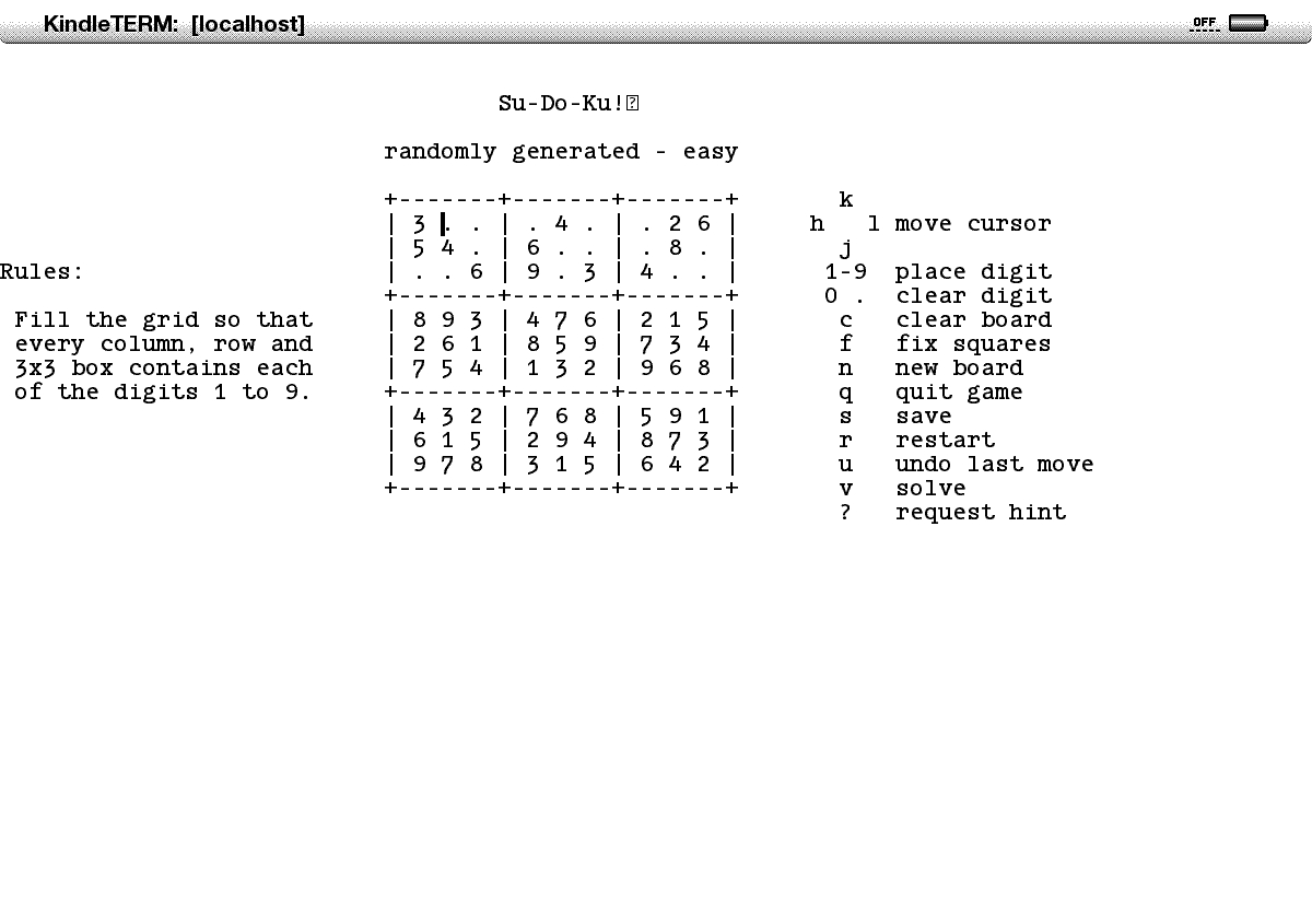 sudoku on console through kindleTerm