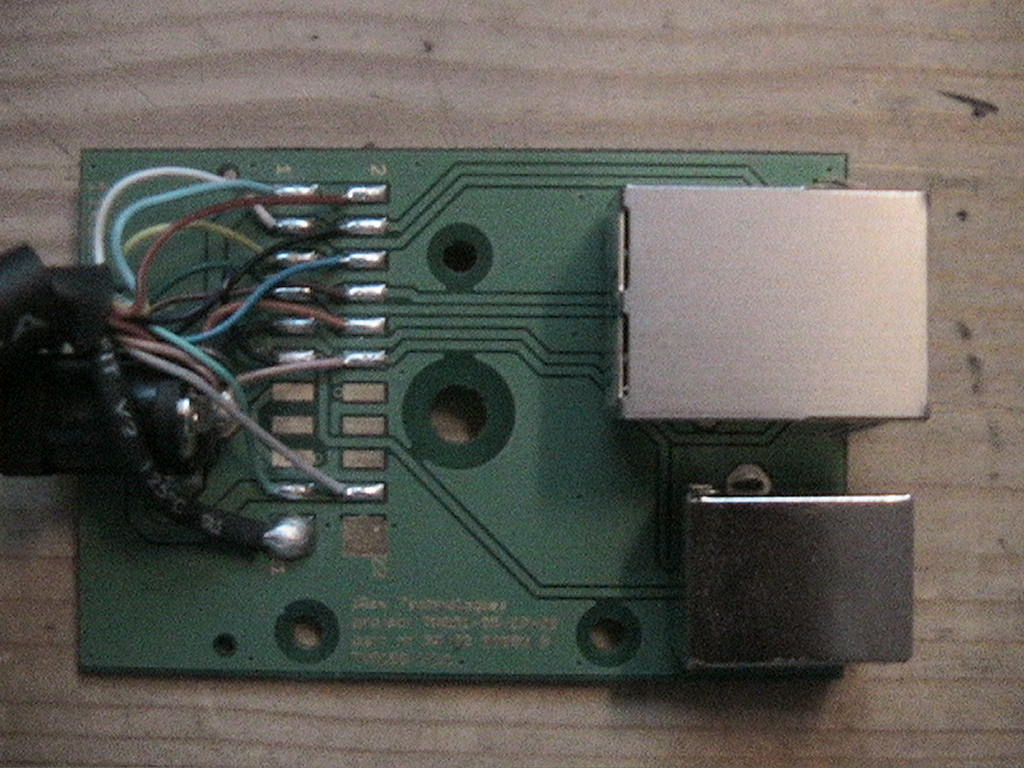 Guys, 10/100 ethernet only uses 4 wires, but there's 7 going to the RJ45 connector. The extra three might be Rx/Tx/GND serial on the unused pins. Can you check this?