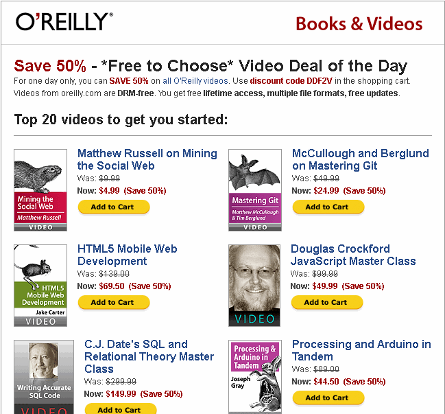 O'Reilly - 50% off - Video deal of the day
