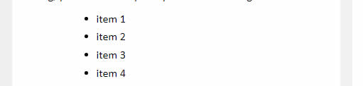 <ul class="list_"> <li class="block_22">item 1</li> <li class="block_22">item 2</li> <li class="block_22">item 3</li> <li class="block_22">item 4</li> </ul> The bullets appear to indented much deeper than in the original Word file. I'm thinking it should be simple enough the decrease the indent but I can't figure out how? Sigil has toolbars at the top, one of which has a 'decrease indent' button, but how do I actually use this to change what I see in the HTML or preview window? Thanks |