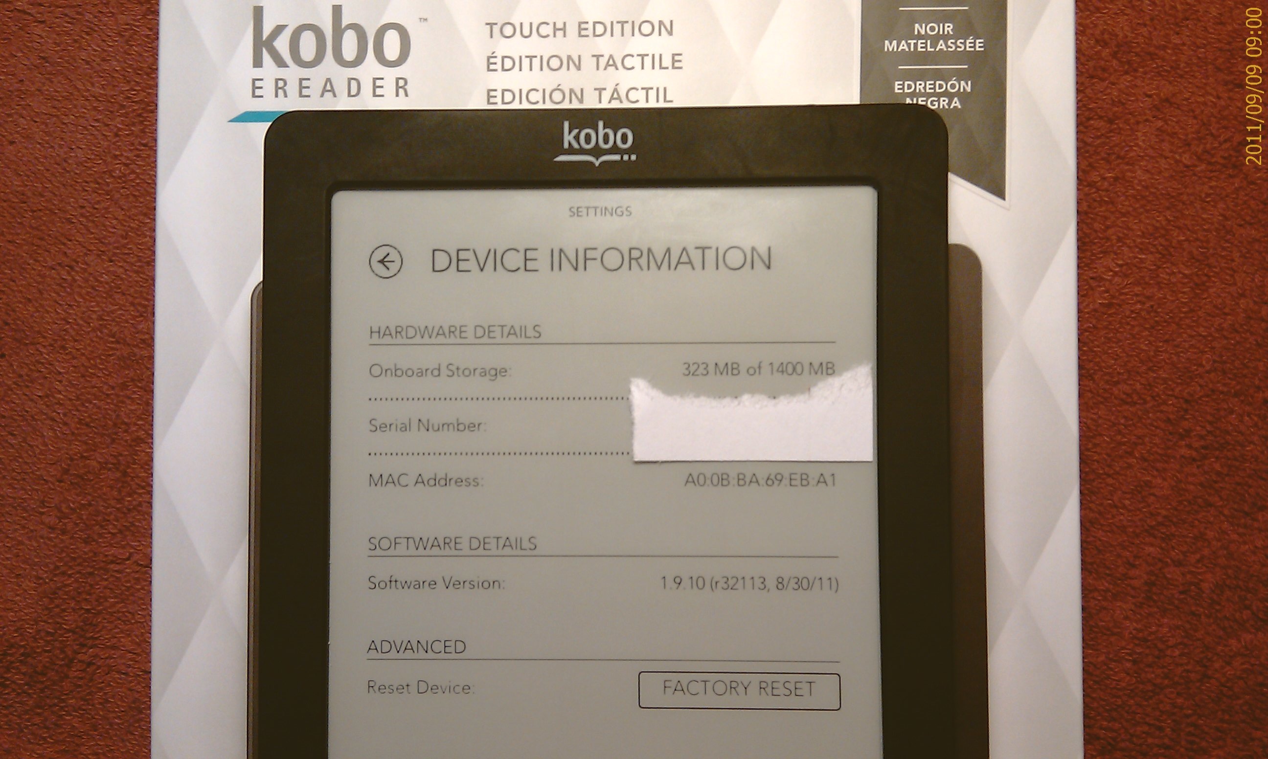 When performing factory reset to prepare item for shipment, unit is unresponsive. Will not power on. After 5 hours of charging there is no change. Screen is white. Tried performing several hard resets to no avail. After Googling it appears this is a common problem. Be cautious when buying a Kobo Touch. |