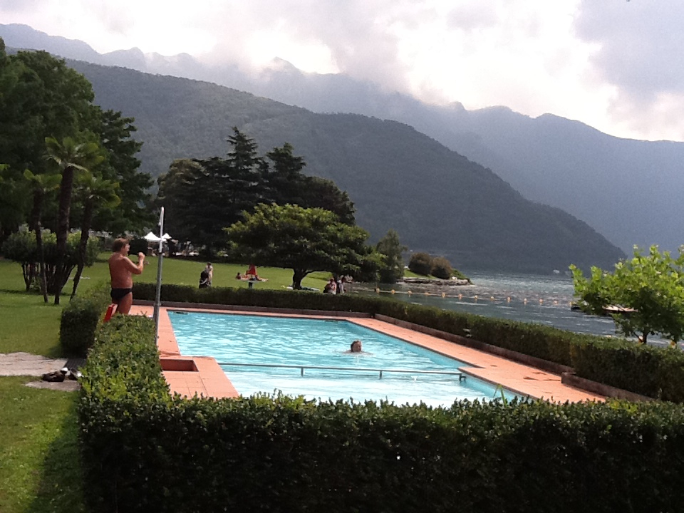 It is called Lido Comunale, it is considered one of the prettiest establishments of the lake of Lugano (Ceresio). There is a swimming pool for children and a bar restaurant with excellent summer food. Entrance is 6 fr. Children under 7 years have free entrance. Yesterday it was almost empty because of the weather forecast. They said terrible rainstorms and we had a beautiful sunny day. We had disastrous rains Thursady. |
