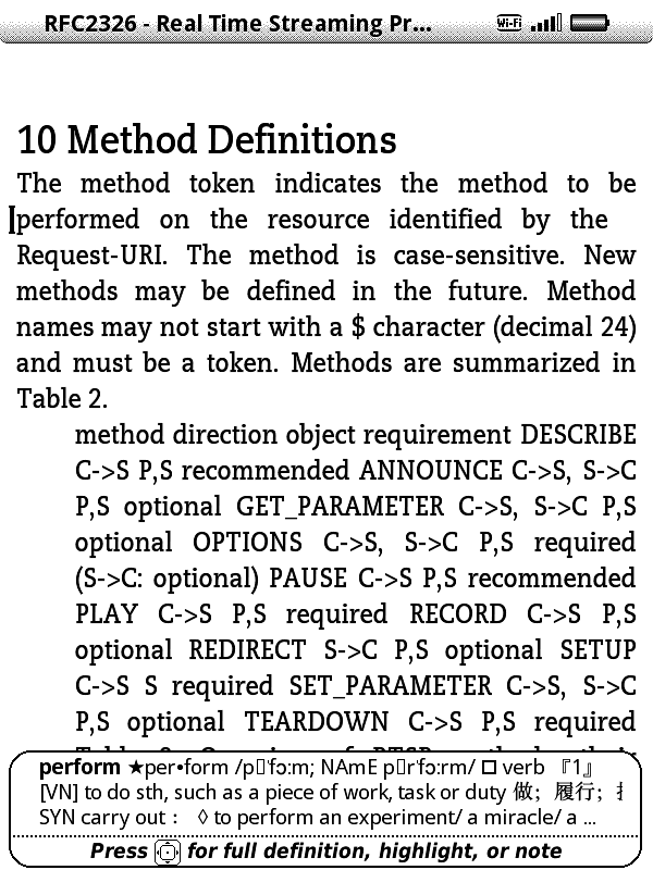 I have installed the latest font hacks and changed some of the fonts accordingly. So far, everything about the English and CJK fonts looks fantastic on this little toy, but the annoying thing came after I looked a little closer at the dictionary. I installed several dictionaries including Oxford American Dictionary and Modern English Dictionary, etc. But among all of them, some their phonetic symbols are missing. There are no weird symbols, no junk information, just blank placeholders I assume.