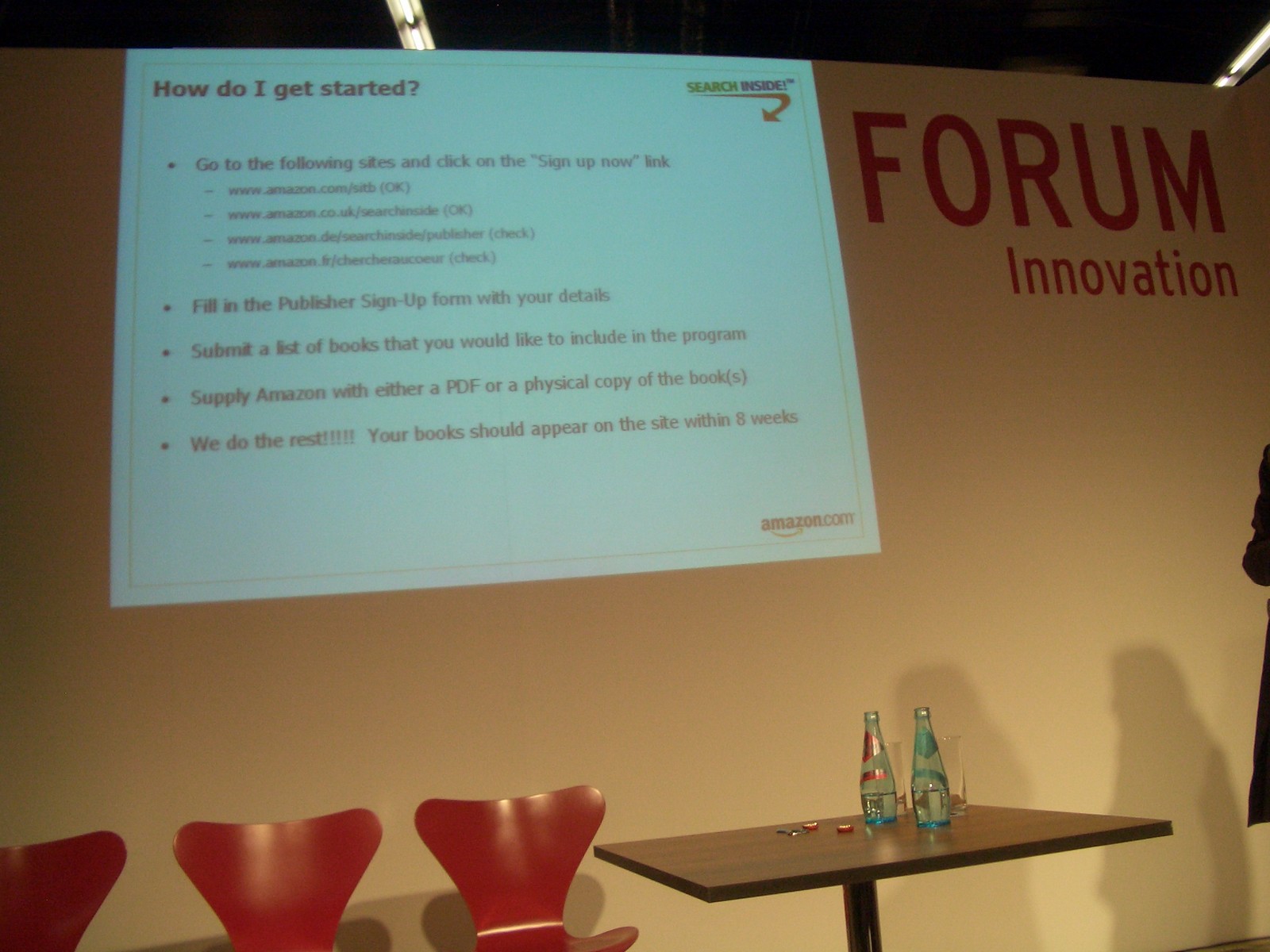 "We don't comment on speculations and rumors" is what I heard today from Genevieve Kunst, Amazon's European Head of Business Development for Digital Media, when inquired about the status quo of the Amazon Kindle e-book reader. Instead, Mrs Kunst elaborated for almost thirty minutes on how Amazon's Search Inside! feature helps publishers boost their sales (by a "statistically proven" good 6 percent) and how Amazon Upgrade, basically an extension of Search Inside!, allows customers to receive full-text access online (for an additional fee of course). Both features are still easily overlooked on Amazon's excessively crowded and busy pages, but Mrs Kunst pointed out that those will be better integrated in near future. She also touched upon the topic of e-books by mentioning MobiPocket and eBookBase; but really, nothing new here either.Now, I'm sure there's a perfectly reasonable explanation for the information embargo surrounding the Kindle reader. Whether just clever marketing or an actual technical reason for a possible delay, it remains open to speculation (here we go again) whether we will see this drool-worthy device unveiled any time soon (like, say, October 15). Related: Amazon Kindle likely launch date: October 15!, Kindle Launch at Frankfurt Book Fair?, "Kindle Editions" showing up on Amazon |