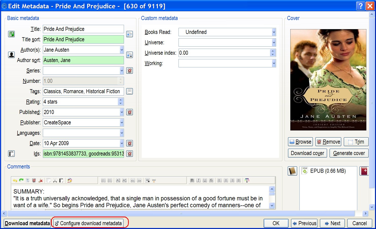 - The other is the Configure Metadata download screen shown after you select Add a book by ISBN and enter an ISBN and click ok.