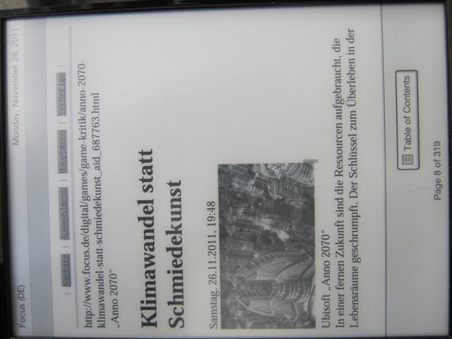 I've downloaded with calibre news from the web, i convertet them to epub files and transmited them to the Sony Prs-t1.