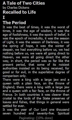 Chapter 1 Chapter Name This is the first paragraph. And this is the second paragraph. Add those, and you've a really nice, light, ereader application for epubs! Last edited by Sweetpea; 11-07-2009 at 11:15 AM. |