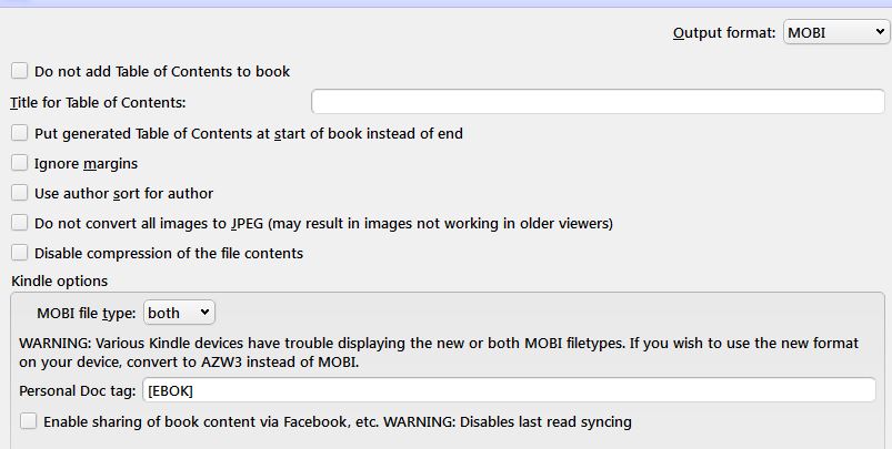 I have my convert to .MOBI set to 'Both.' I shall experiment with changing the resulting extension to .AZW3, and see what happens. |