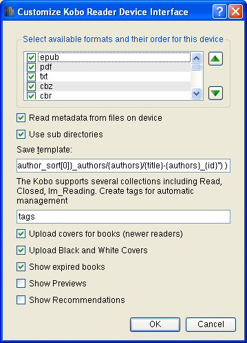 ![]() You might want to set that (Kobo) popup to 'Do Nothing' for All file types, just to be rid of it ![]() You don't have another reader/Phone plugged in when this happens? Calibre can't deal with 2 detected devices at the same time ![]() Or did you happen to set 'Connect to folder'? OK Time to look at the device driver plugin. Preferences: Plugins: hunt for) Device Interface... : Kobo... |