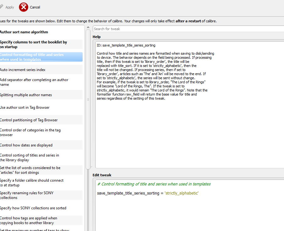 what I don't want is Calibre to put in the sort field Author, Surname and Name separated by a comma and in the Title sort field, the article at the end with a leading-in comma.