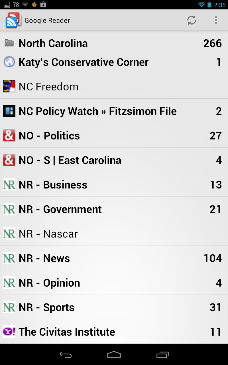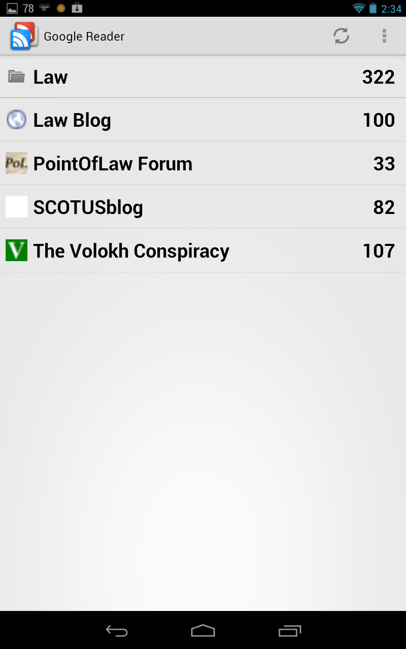 Update: Now that I have an Android device I no longer use any of calibre's recipes for gathering articles or news. I use Google Reader and its app to access blogs, web sites and newspapers of interest to me, see attached for examples of Google reader app.