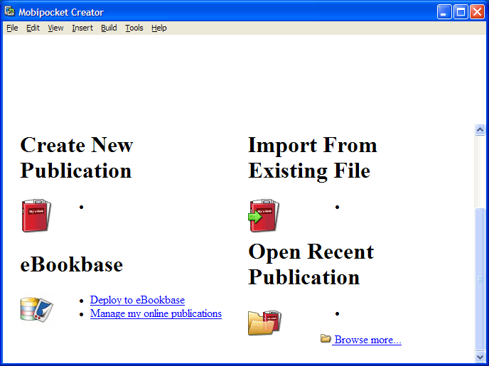 I've encountered a strange problem with Mobipocket Creator - the start screen is nearly empty, as can be seen from the screenshot attached.