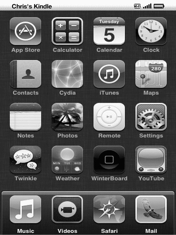 Now it looks like a jailbroken iDevice! I've seen jailbroken phones with custom icons elsewhere, but never expected them to come to the kindle... If only this would work on the K3.....