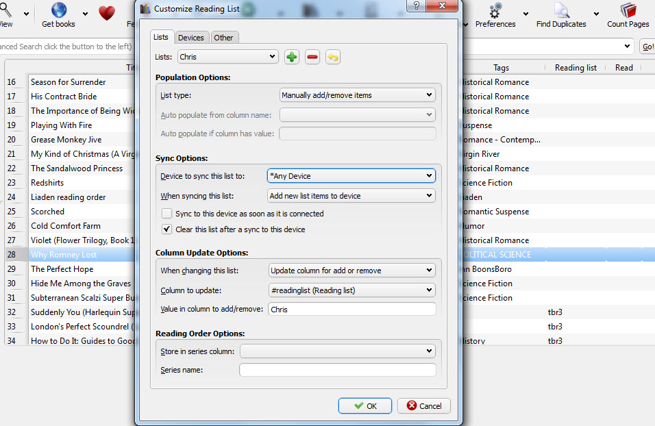 I created a reading list of books to add to my husband's Kindle. I went through all the steps to create the reading list, I'm pretty sure of it, but when I assign that particular reading list to a book, nothing shows up in the Reading List column. I can add books to other reading lists I've got, no problem, but this one doesn't seem to show up.