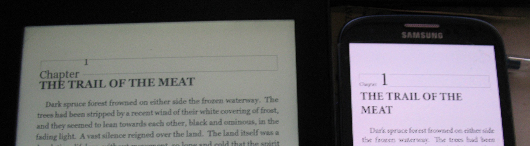 Not sure if this or the Kobo forum is the right place...but ended up with here. I like the chapter headings that have the small "Chapter" with the large # like in White Fang from Feedbooks (that comes default on Aldiko). Anyhow the problem is on my Kobo it is currently coming out wrong. The chapter is lowered but the number is small and way to high. Also looks fine/as intended in Calibre. See attachment with my Kobo on the left (displaying it incorrectly) and my cell with Aldiko on the right (displaying it correctly).
