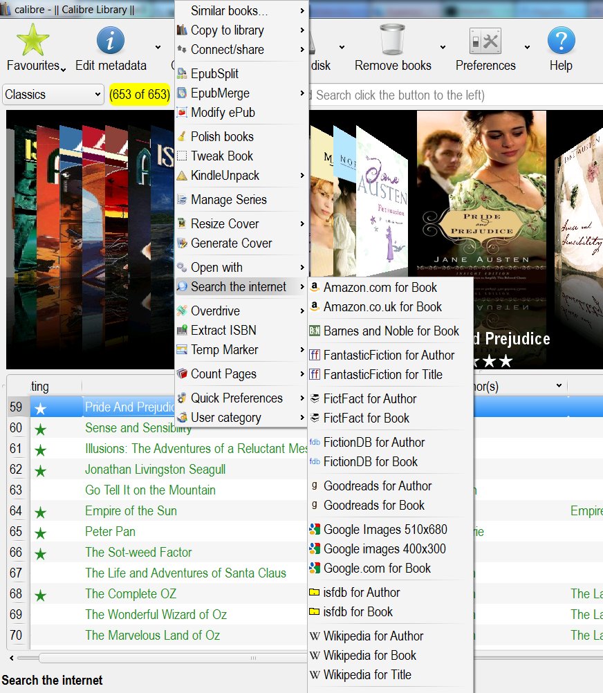 There is a Search the Internet plugin that allows you to click on a book and go straight to Google images for that book. Quote: